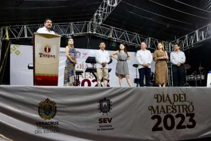 Tuxpan, Ver., 20 de mayo de 2023.- El secretario de Educación, Zenyazen Escobar García, reconoció la labor que las y los trabajadores del magisterio desempeñan como agentes de cambio social. Tras asistir al festejo por el Día de la Maestra y el Maestro en este municipio, recordó que desde hace 10 años el magisterio ha sido un pilar importante en el impulso de la llegada de la Cuarta Transformación al país, como sucedió al luchar en contra de la reforma educativa.