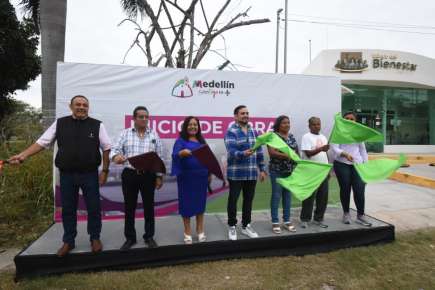 Medellín de Bravo, Ver. 26 de noviembre de 2023.- Dando continuidad al compromiso de mejorar las condiciones sociales de los medellinenses, el Alcalde Marcos Isleño Andrade dio el banderazo de obras de tres pavimentaciones y un parque recreativo en cuatro diferentes puntos del municipio, beneficiando así a miles de ciudadanos.