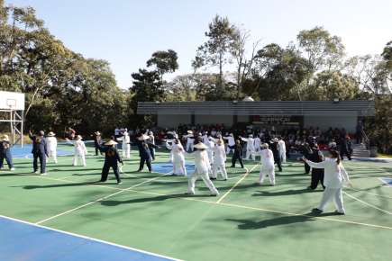 Durante su visita, el Ejecutivo convivió con los beneficiarios directos quienes fueron a una demostración de Tai Chi, además se tomó un tiempo para cultivar tomate, cilantro, chile y trasplantar café de la variedad Sarchimor; en el huerto también se siembran lechuga, rábano y acelga para su venta al público.