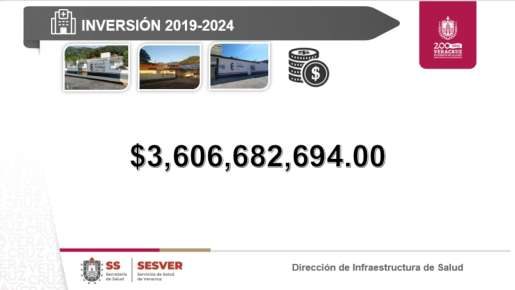 La inversión total en infraestructura ejecutada por el Gobierno estatal desde 2019 supera los 3 mil 606 millones de pesos; en este periodo, la administración ha ejecutado 628 obras y las restantes 195 quedarán a cargo del organismo IMSS-Bienestar mediante convenio, dio a conocer el gobernador Cuitláhuac García Jiménez en conferencia de prensa.