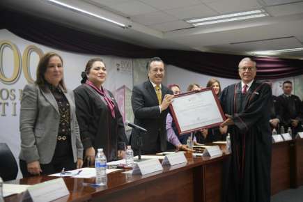 Como muestra de su reconocimiento a la labor de impartir justicia, el mandatario cedió el documento que, además de considerarse un hito en la defensa de los derechos y dignidad de los veracruzanos, fincó los poderes Ejecutivo, Legislativo y Judicial de la entidad y la declaró un estado independiente, libre y soberano.
