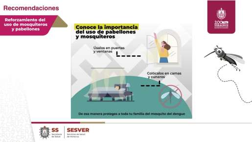 No obstante, la estrategia más importante y que erradica la mayor cantidad de criaderos es la denominada Lava, Tapa, Voltea y Tira, así como el uso de pabellones y mosquiteros en puertas, ventanas, camas y cuneros, ropa de manga larga y fabricación de repelente casero con clavo, lavanda, romero, hoja de aguacate, canela, citronela, neem y alcohol.