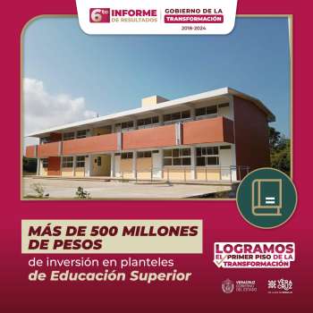 Xalapa, Ver., 19 de agosto de 2024.- El Gobierno del Estado reafirmó su apuesta por garantizar el acceso universal a oportunidades educativas y culturales con una inversión de más de mil 200 millones de pesos en la construcción y mantenimiento de escuelas e instalaciones deportivas; modernización de recintos, atención a población vulnerable y respaldo a la investigación.