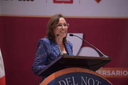 Durante su mensaje, expresó su reconocimiento al cuerpo notarial por su papel esencial en la construcción de una sociedad basada en la confianza, la transparencia y la legalidad, “se llama certeza jurídica, con vocación y servicio. Eso es el notariado. Ese es su lema. Resume con claridad la esencia de su labor, pero hacerlo siempre con ética, compromiso y una profunda vocación de servicio”.