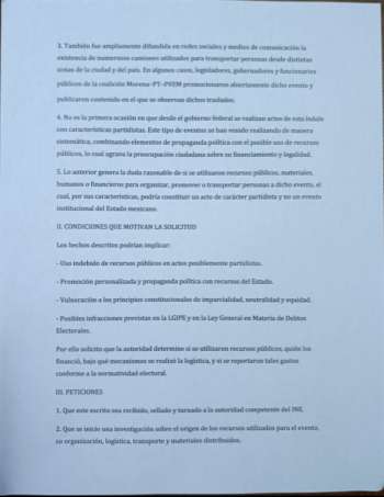Por ello, el martes 9 de diciembre, presentó la solicitud ante el INE para exigir que no se permita la movilización masiva de personas sin transparencia en el financiamiento, que los trabajadores del Estado no sean obligados a asistir a eventos de carácter político y que no se vulneren los principios de imparcialidad, equidad y neutralidad establecidos en la Constitución.