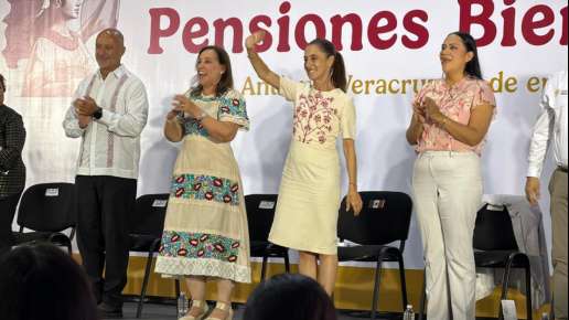 Posterior a ello, en Cardel, la presidenta Claudia Sheinbaum, junto con la secretaria de Bienestar, Ariadna Montiel Reyes, y la gobernadora Rocío Nahle, procedió a la entrega de pensiones Mujeres Bienestar, programa que brinda apoyo económico de 3 mil 100 pesos bimestrales a féminas de 60 a 64 años.