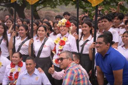 Tezonapa, Ver., miércoles 15 de abril de 2026.- La gobernadora Rocío Nahle García inauguró la pavimentación del tramo Tezonapa–Motzorongo, de aproximadamente 5 kilómetros, ejecutada por la Secretaría de Infraestructura y Obras Públicas (SIOP) y clave para el transporte de caña, café y hule en la región.